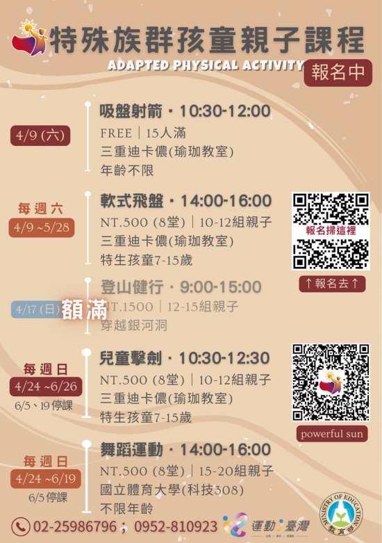 一、 本會長期致力於身心障礙者適應體育暨休閒型服務,分別有籃球、飛盤、射箭、西洋劍、坐地排球、舞蹈律動等,俾利提供渠等專屬的學習環境,建構穩定的體育休閒生活。