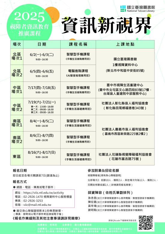 四、旨案課程簡章及海報請逕至該館無障礙閱讀資源整合查詢